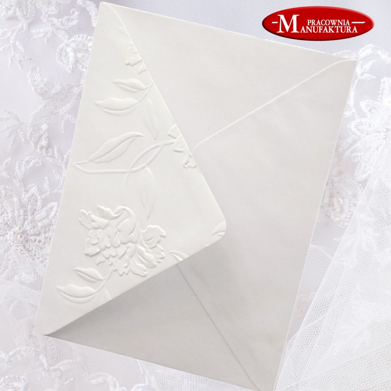 Wytłoczenie - embossing - na klapie koperty - motyw kwiatowy - peonie.