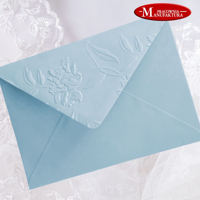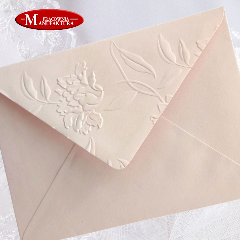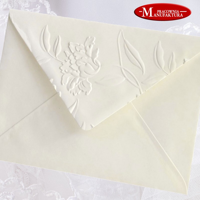 Usługa tłoczenia na klapie koperty - motyw kwiatowy - peonie.