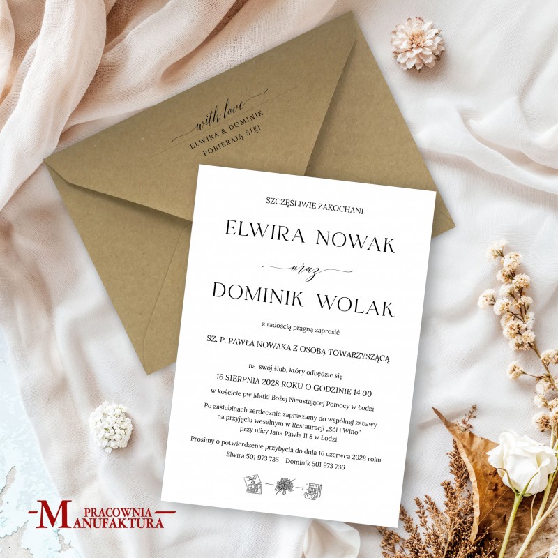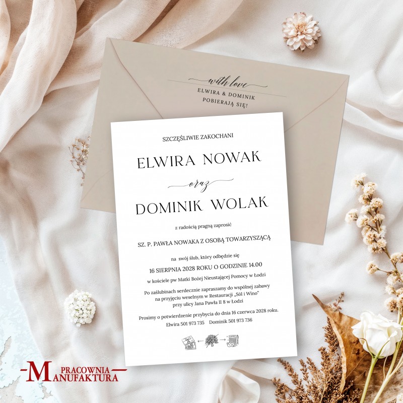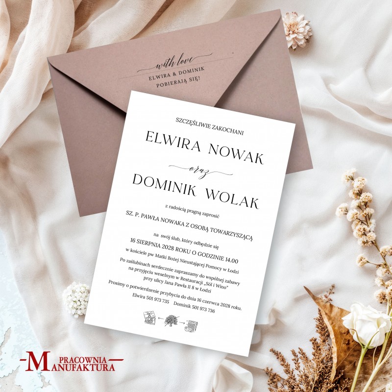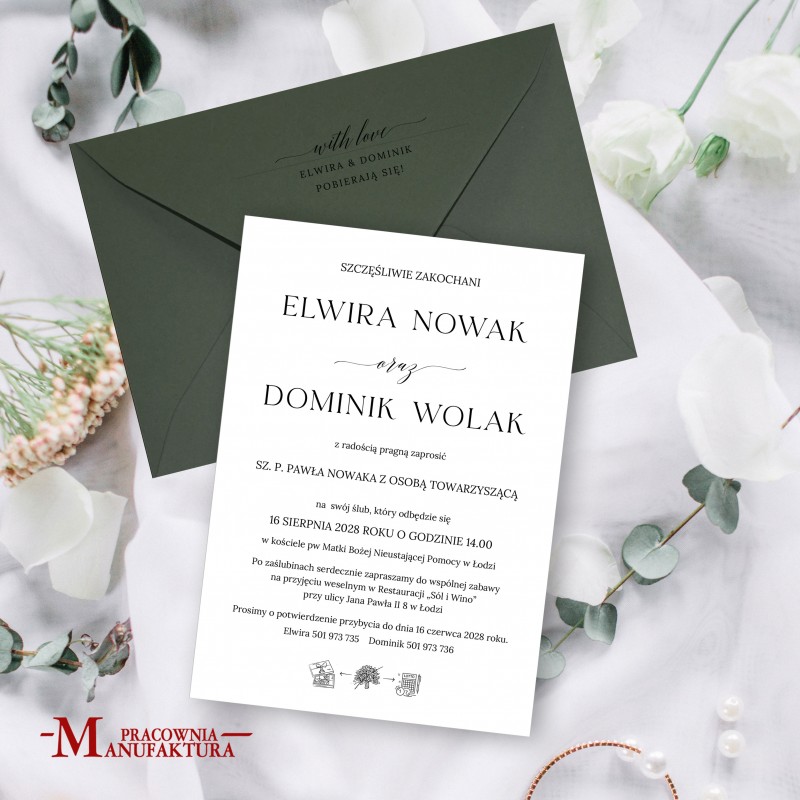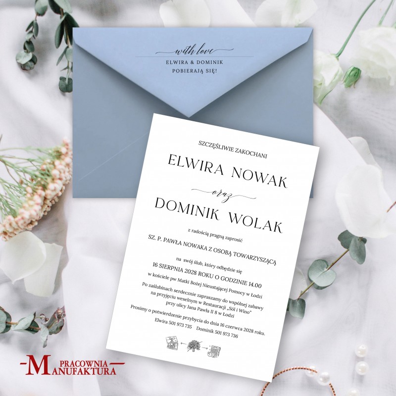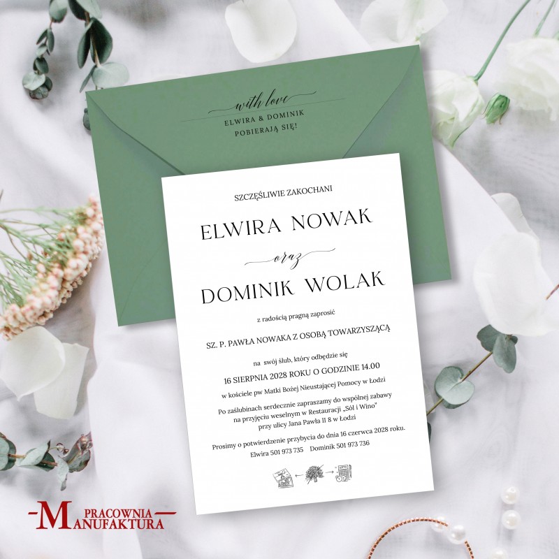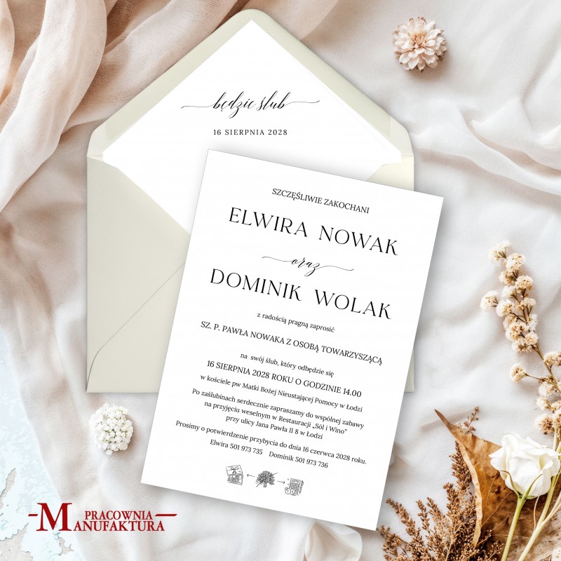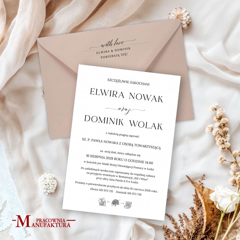 | DANE DO ZAPROSZEŃ | Po otrzymaniu zamówienia prześlemy formularz na adres email wskazany w zamówieniu. Pliki można poniżej pobrać samodzielnie https://pracownia-manufaktura.pl/content/6-jakzamawiac |