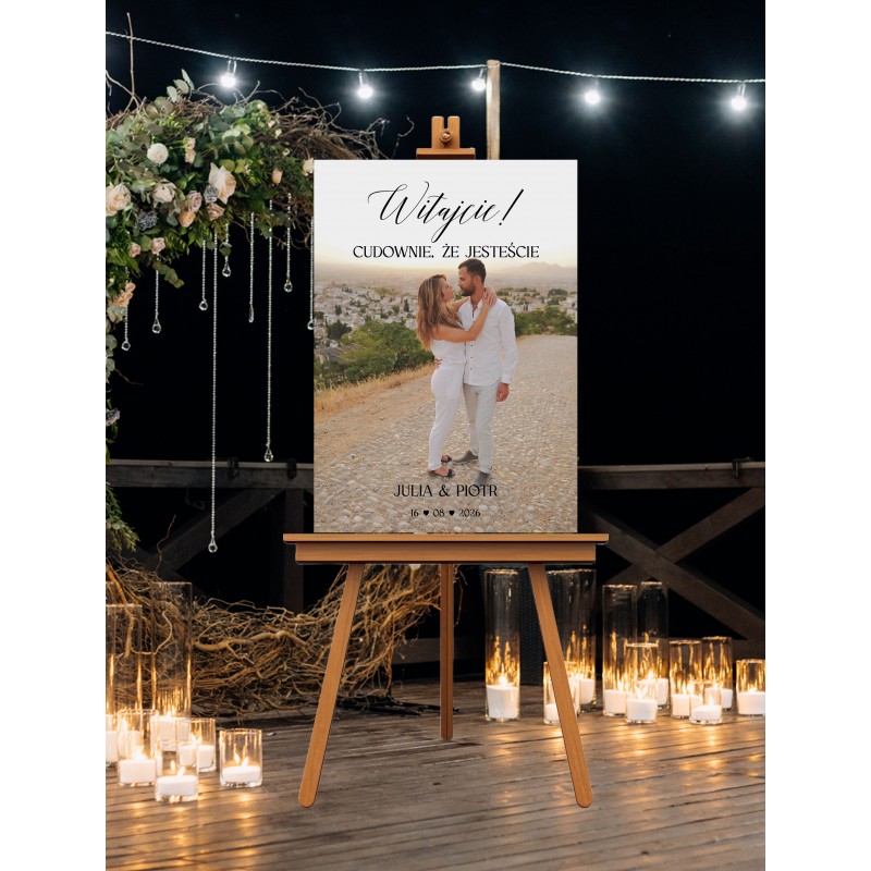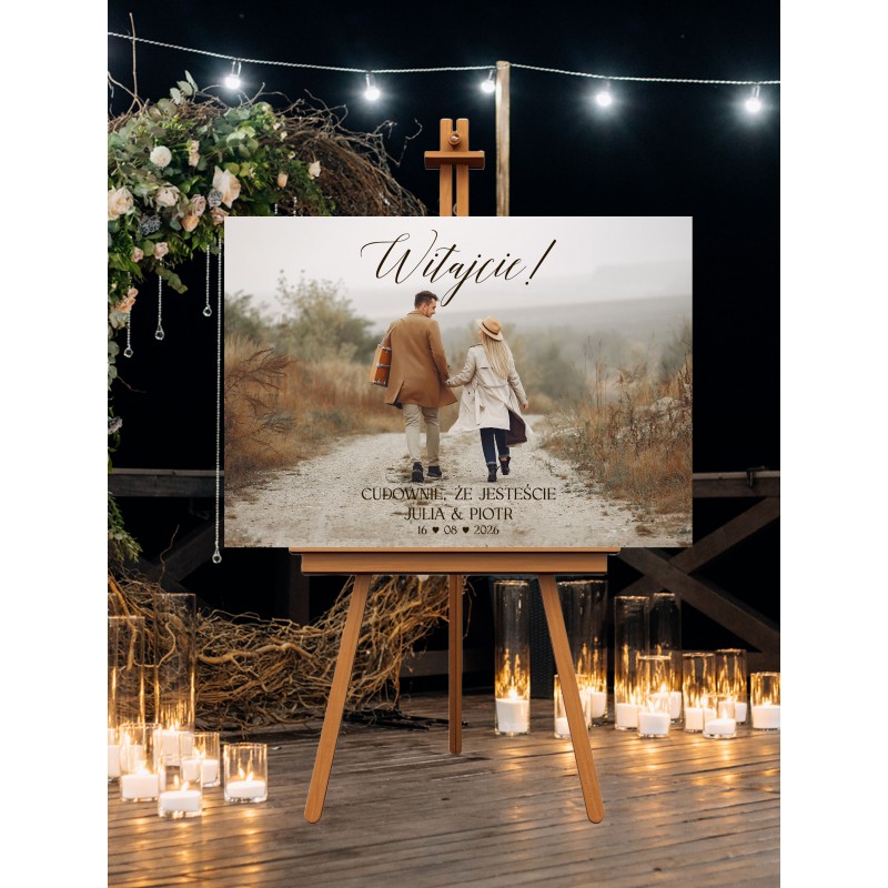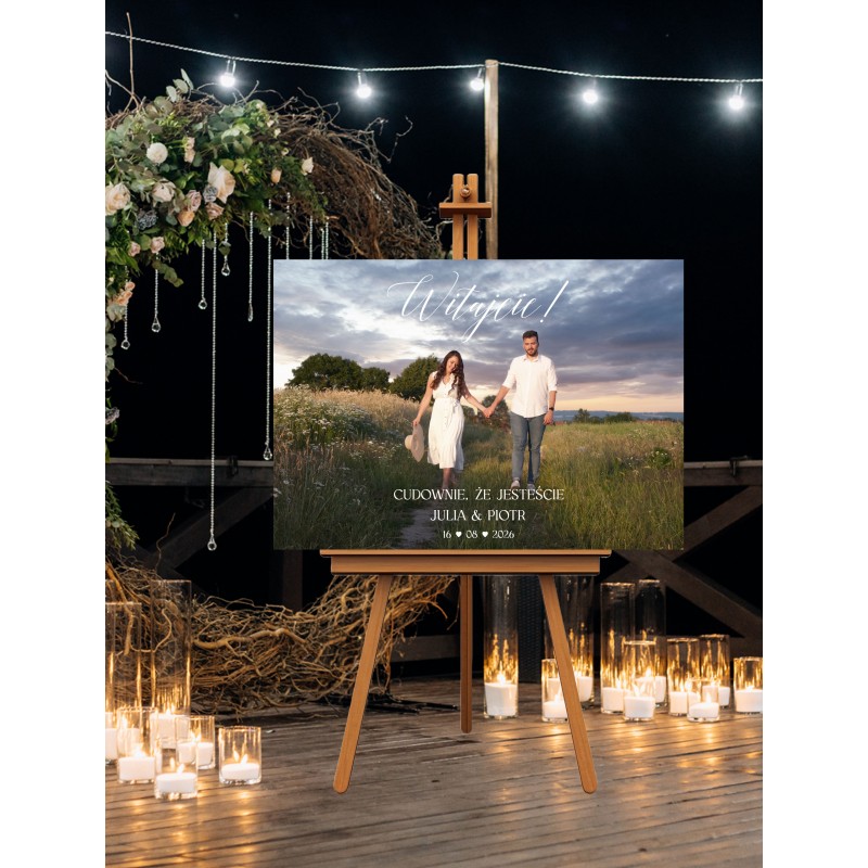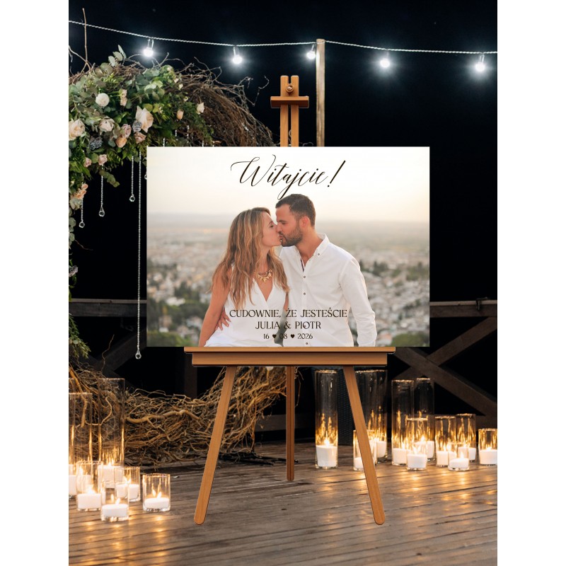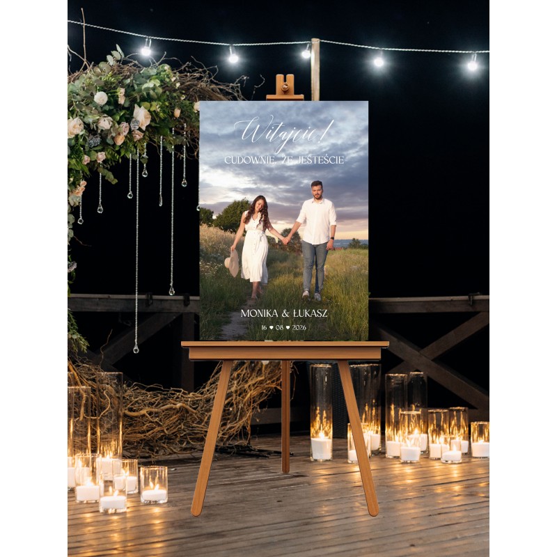 Cena nie obejmuje ramy do oprawy plakatu, koniecznej aby ustawić plakat na sztaludze przed wejściem do sali weselnej.