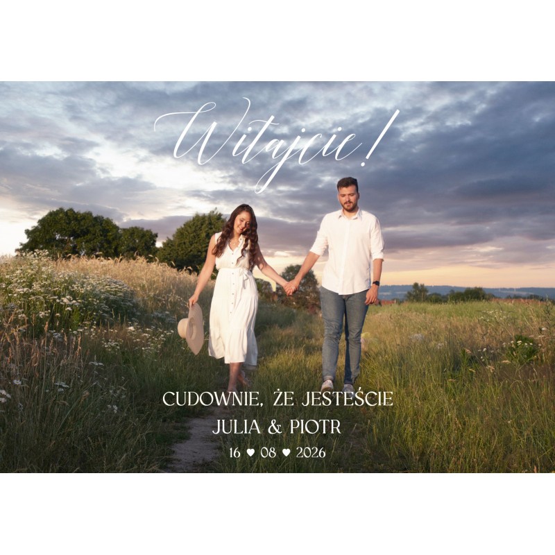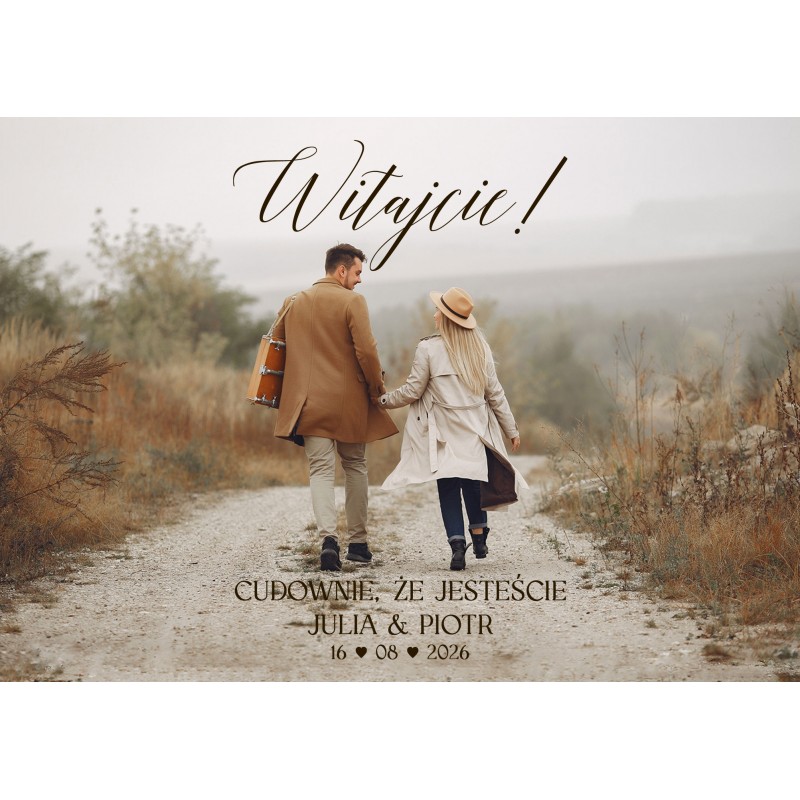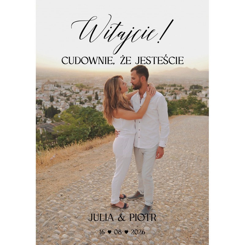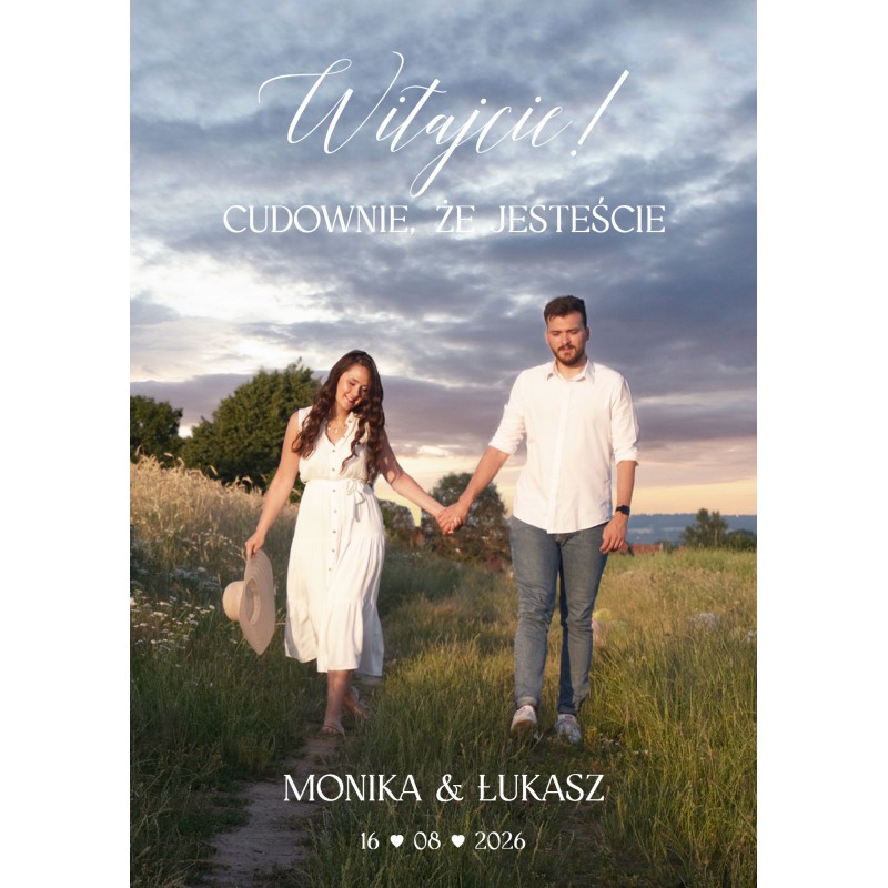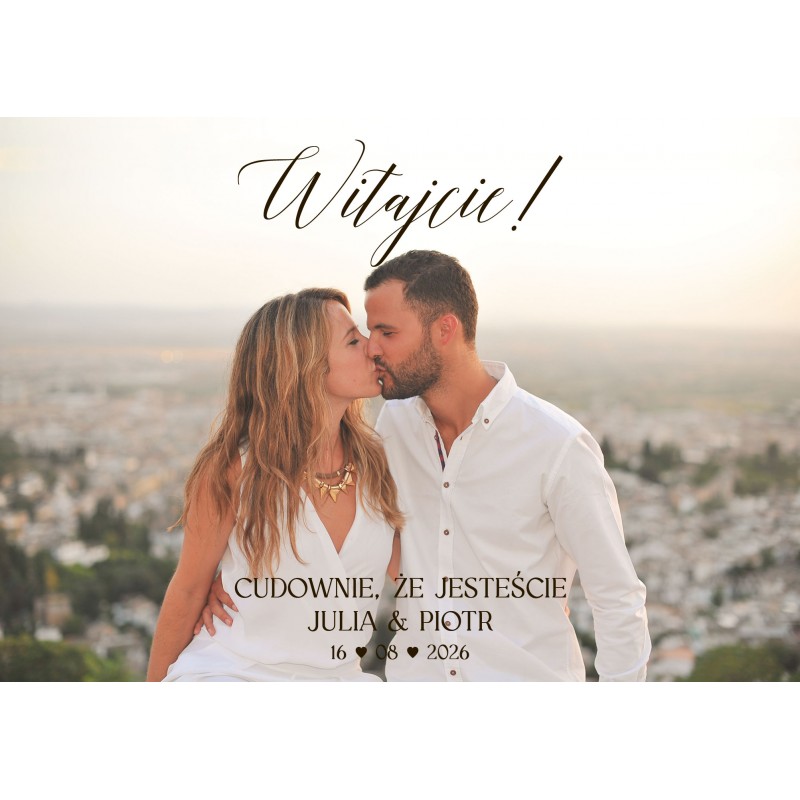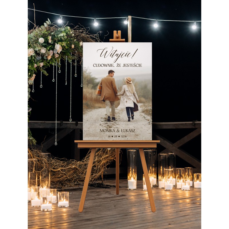 Cena nie obejmuje ramy do oprawy plakatu, koniecznej aby ustawić plakat na sztaludze przed wejściem do sali weselnej.