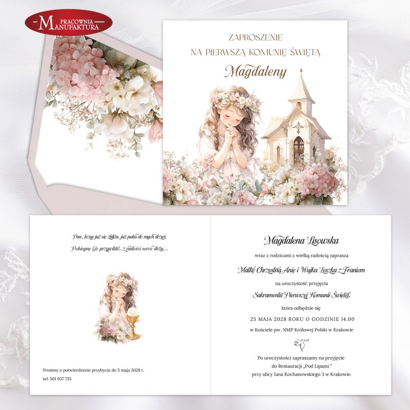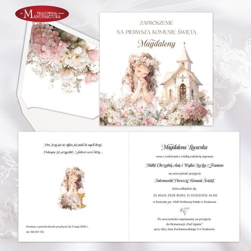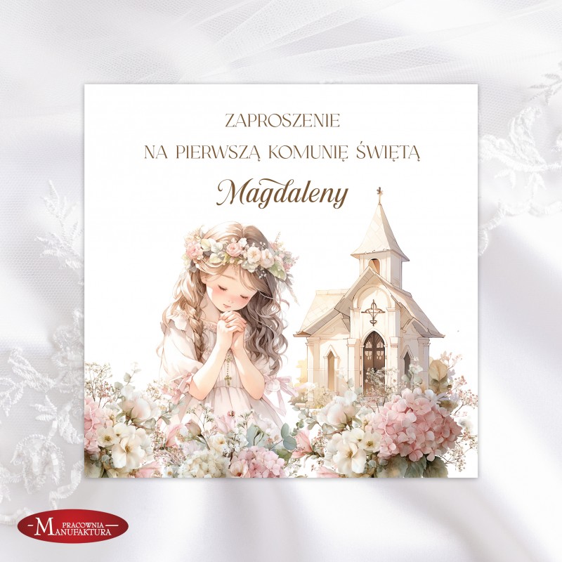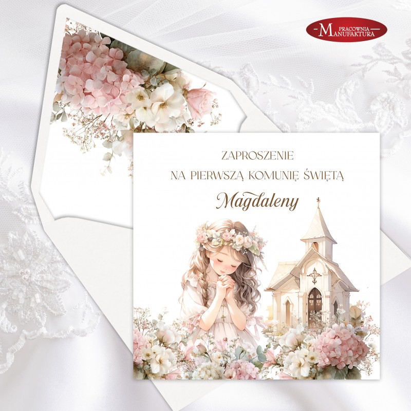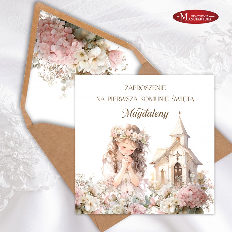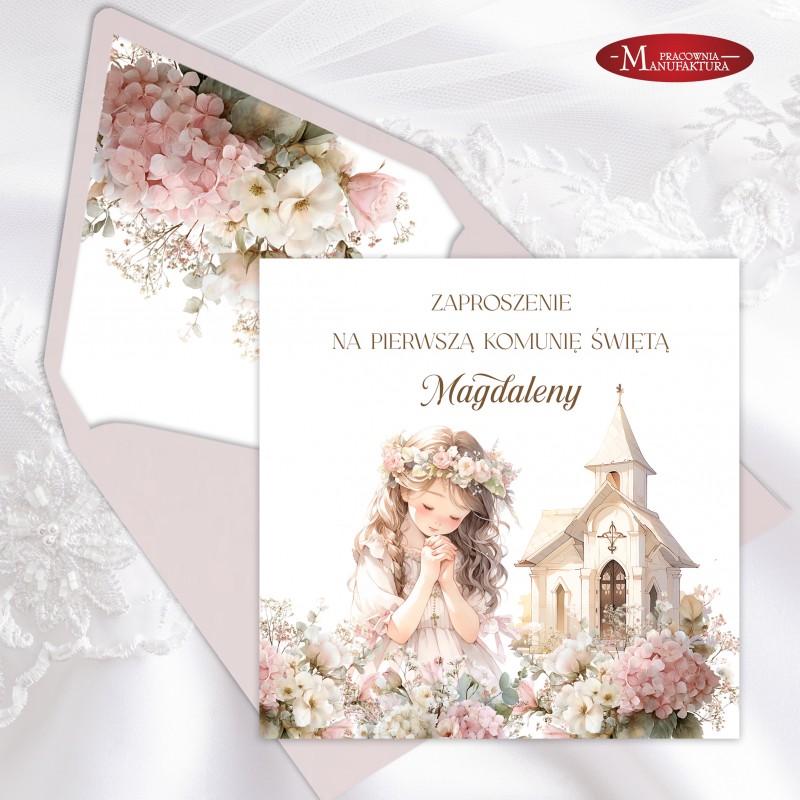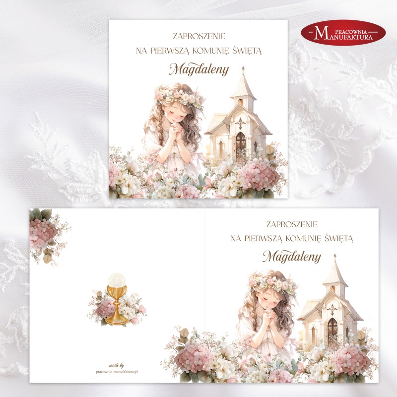 Zaproszenia na Pierwszą Komunię Świętą dla dziewczynki KWIATOWE