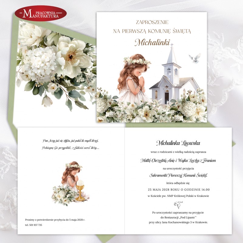 Zaproszenia na Pierwszą Komunię Świętą dla dziewczynki