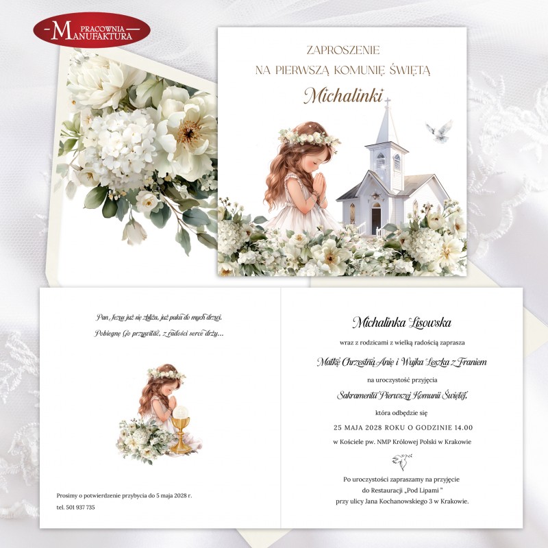 Zaproszenia na Pierwszą Komunię Świętą dla dziewczynki