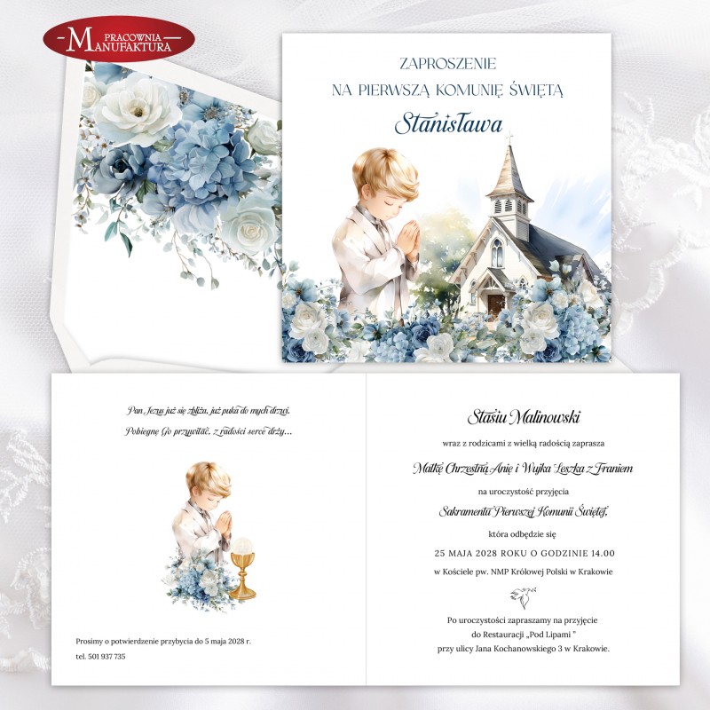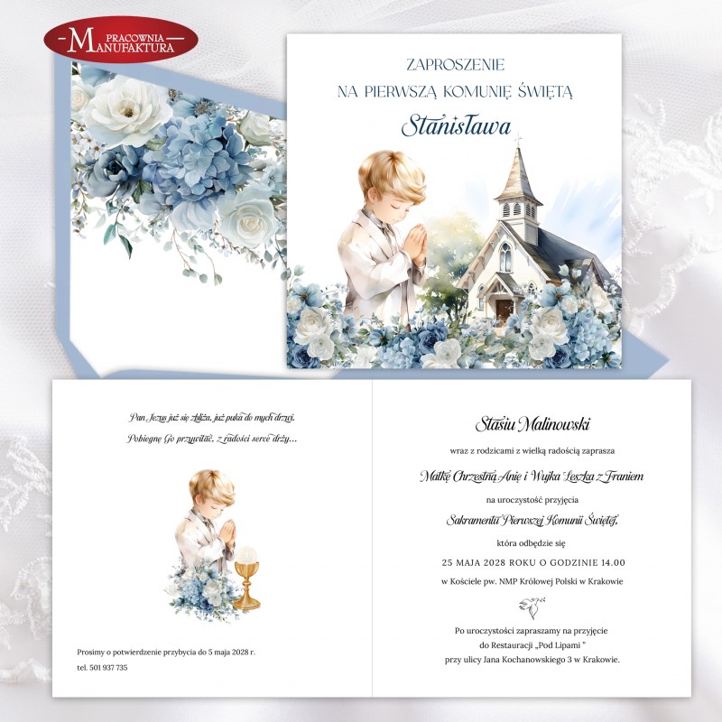 Zaproszenia na Pierwszą Komunię Świętą dla chłopca