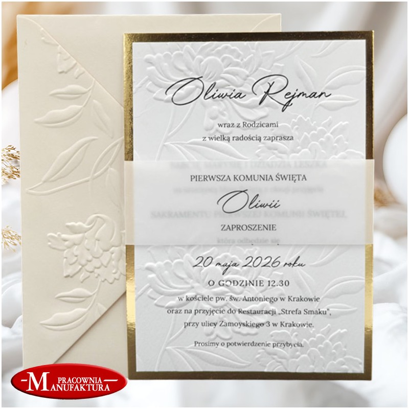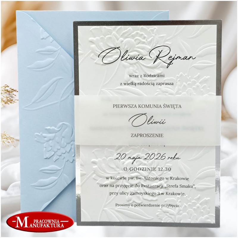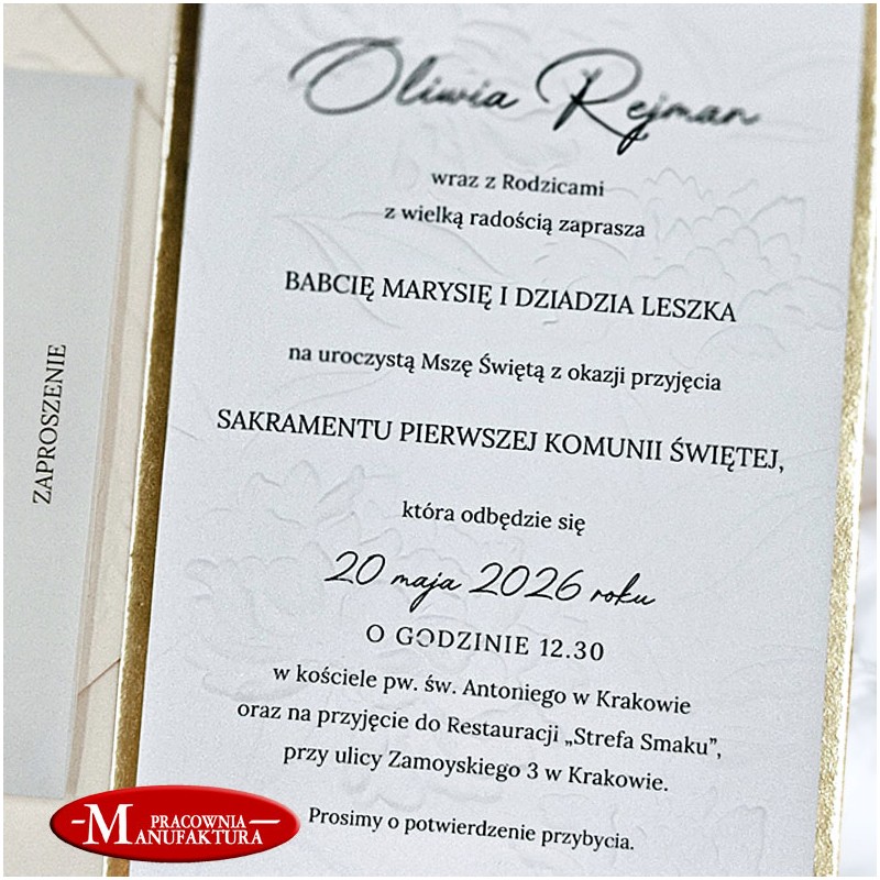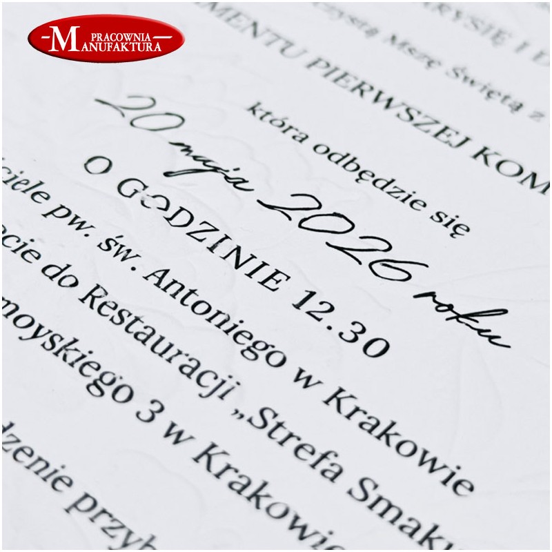 Minimalistyczne zaproszenia wytłaczane na Komunię lub Chrzest
