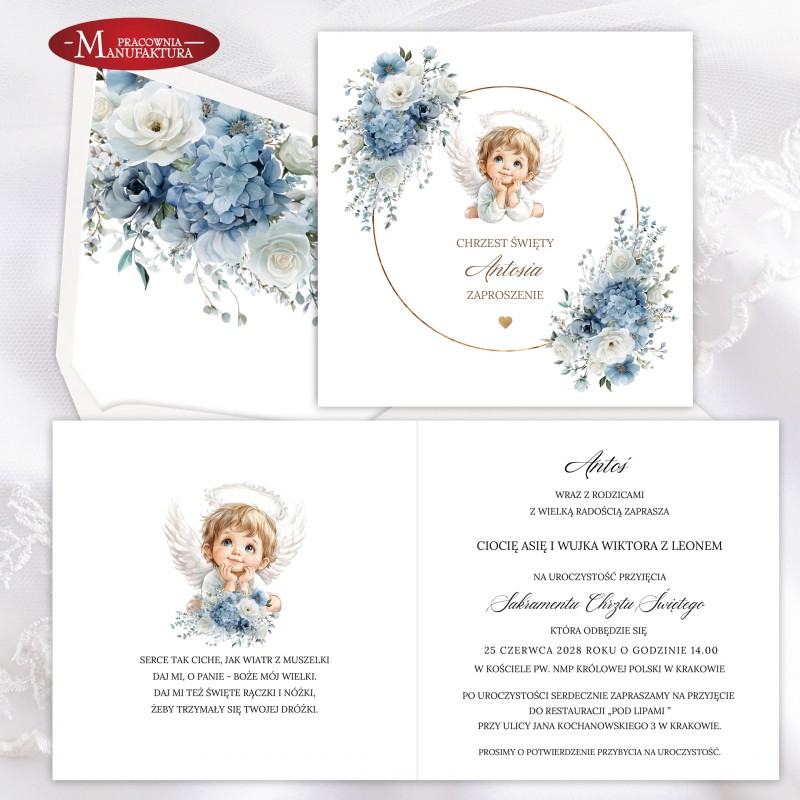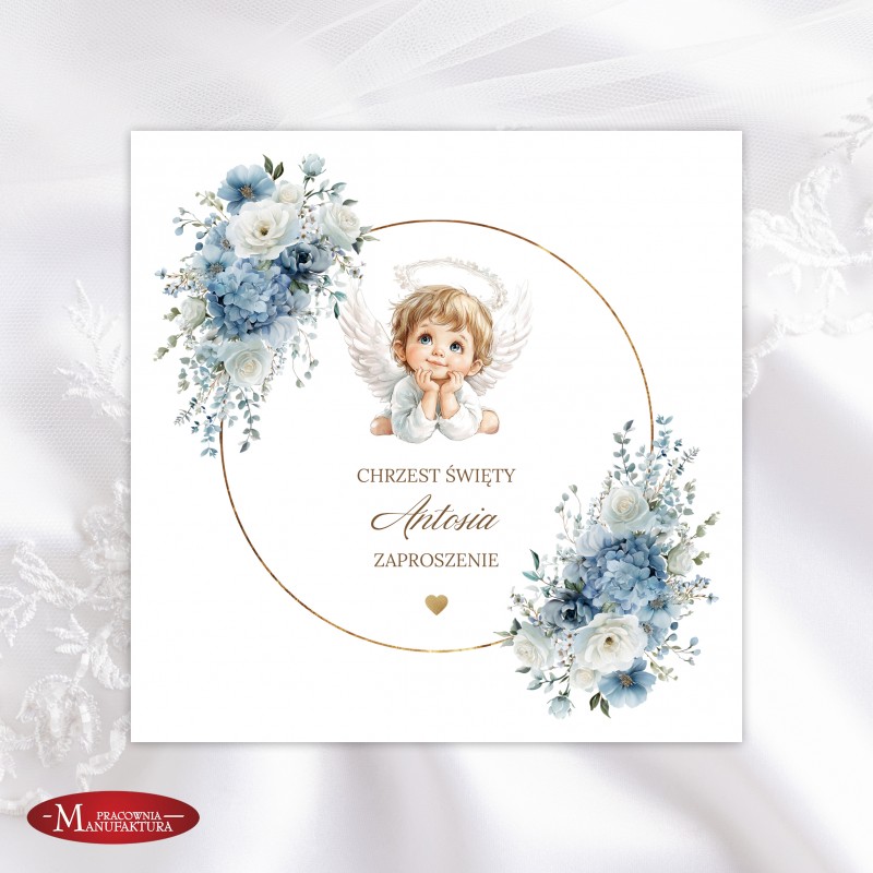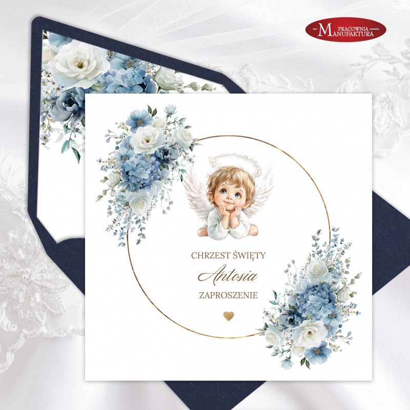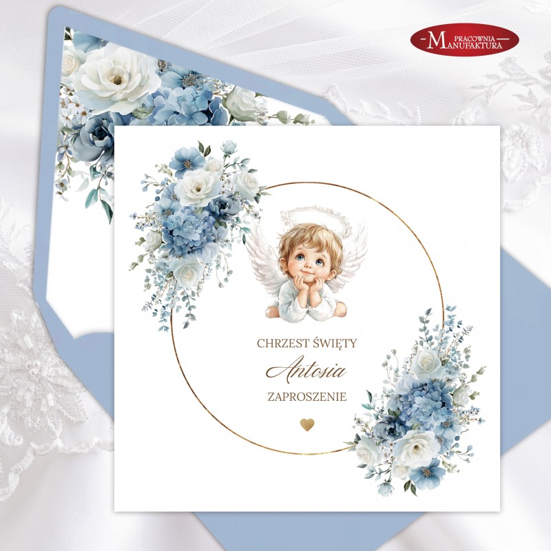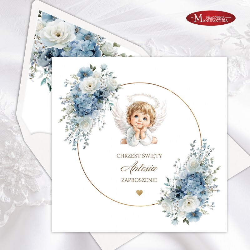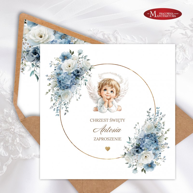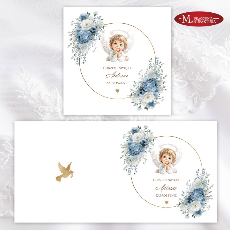 Urocze zaproszenia na chrzest z aniołkiem dla dla dziewczynki