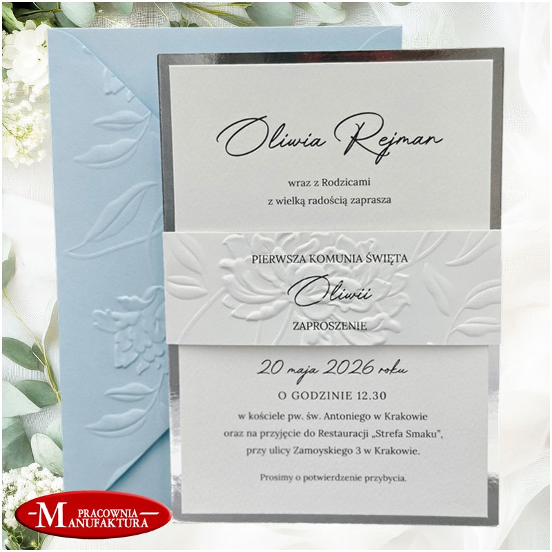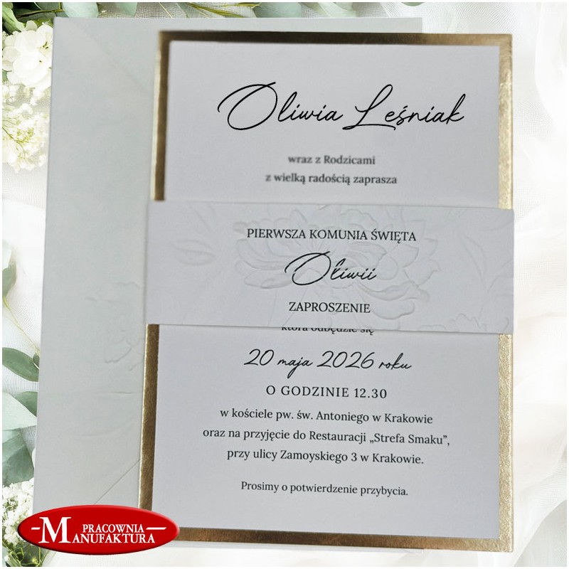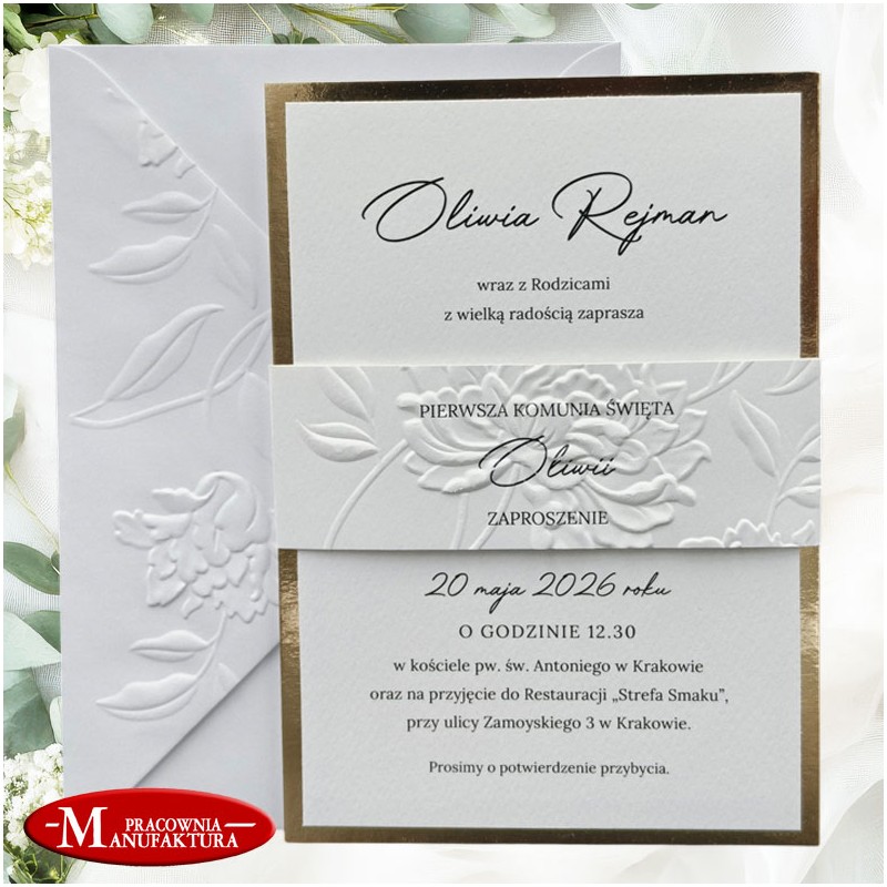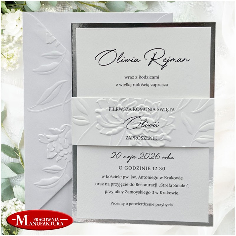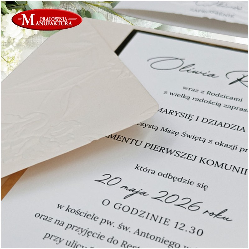 Minimalistyczne zaproszenia wytłaczane na Komunię lub Chrzest